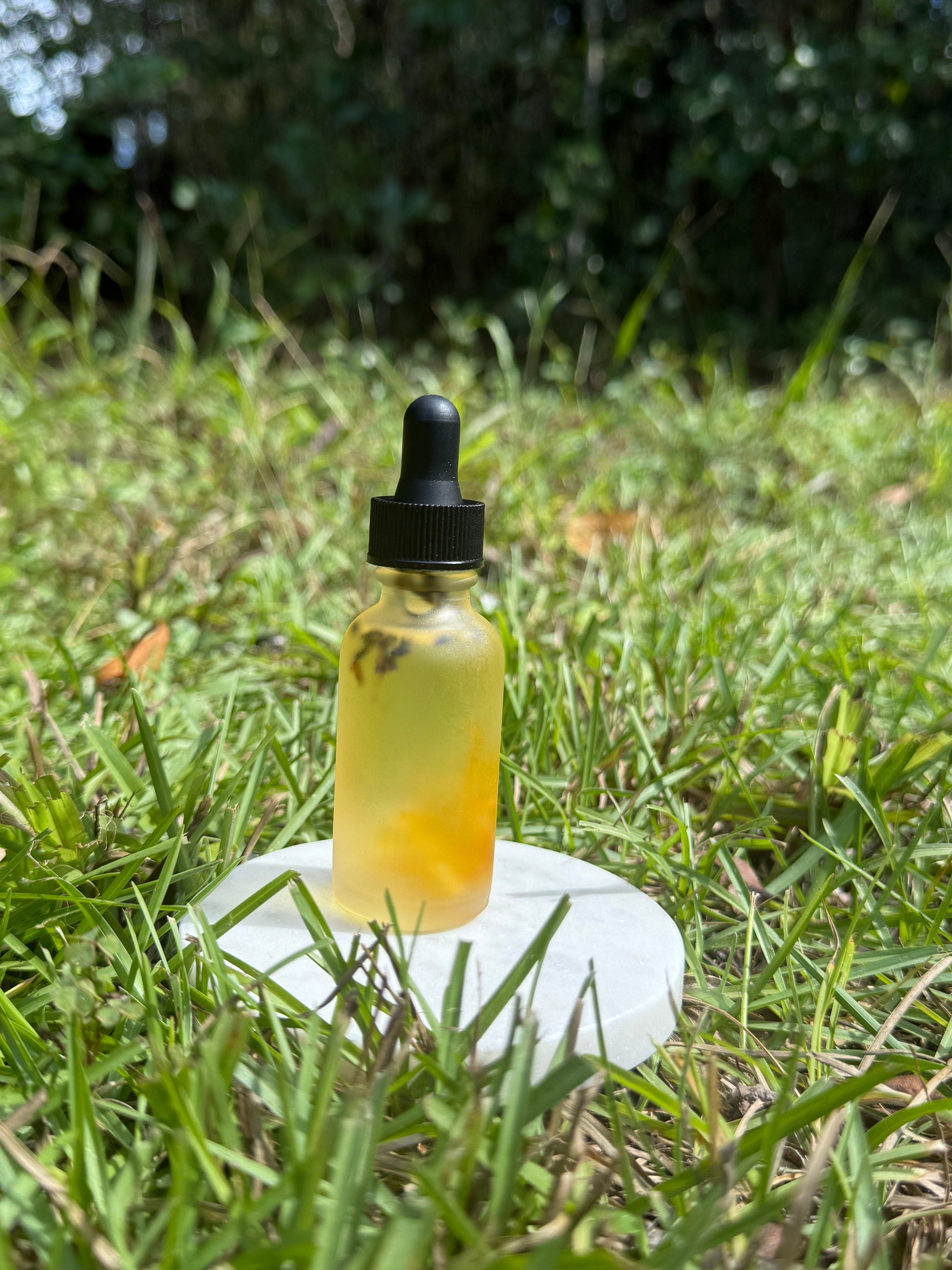 Ingredients: Organic Sweet Almond Oil (Calendula & Lavender Infused), Organic Rosehip Oil, Organic Pomegranate Seed Oil & Vitamin E Oil. Organic dried Calendula Flowers & Organic dried Lavender Flowers.
